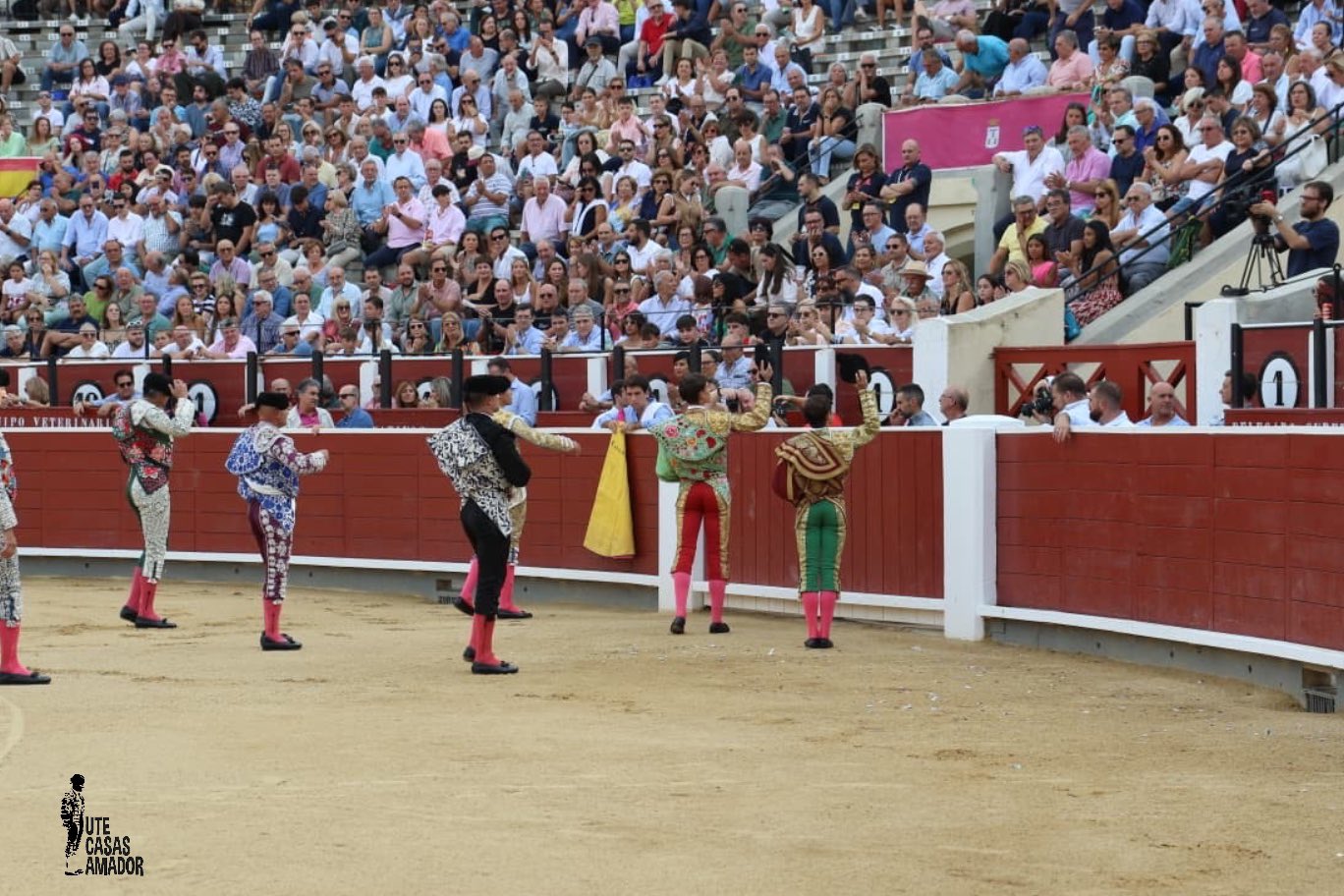 Aarón Palacio, obró un milagro, hace unos días no podía torear en Villaseca de la Sagra, según adjunto en parte médico, el cual decía que debía permanecer de reposo absoluto entre siete y diez días, literalmente y hoy «milagrosamente» reapareció en tan solo tres días, habría que profundizar en esto de los partes médicos algún día, aún asi dejó constancia de su capacidad y aplomo. En su faena al quinto mostró más oficio que brillo, pero le valió para redondear la tarde y acompañar al albaceteño a hombros, con un doble trofeo, excesivo, en otros tiempos de oreja de mucha fuerza.