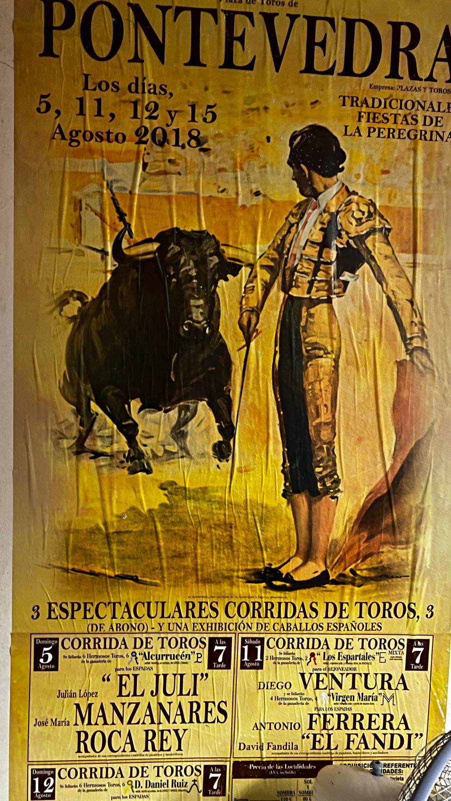 Sin embargo, basta con mirar atrás para descubrir que de original y único tiene bien poco. Ese mismo motivo gráfico, la estampa del maestro, ya se utilizó en 2018 como imagen central de la cartelería de la Feria Taurina de Pontevedra. La empresa gestora del coso gallego sí construyó un cartel sobrio, clásico, de gran fuerza visual y original, que colocaba a la figura del torero en el centro de todo.