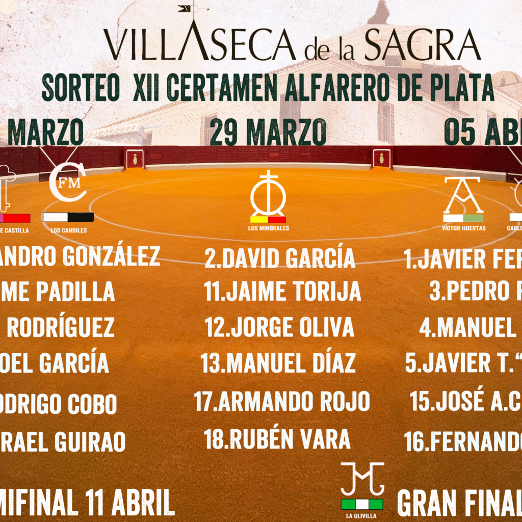 Villaseca de la Sagra ya conoce la composición de las tres novilladas clasificatorias del XII Alfarero de Plata 2026, tras el sorteo celebrado en el marco de las XXV Jornadas Taurinas. El acto, que despertó gran expectación entre aficionados y participantes, definió el orden y los carteles de un certamen que continúa consolidándose como uno de los más importantes escaparates para los novilleros sin picadores.