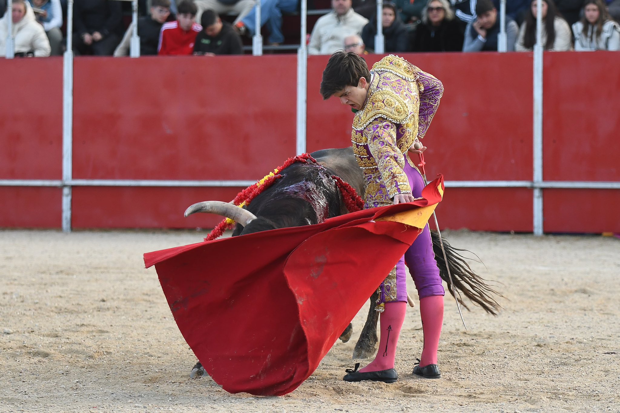 En ese contexto, fue Sergio Rollón quien marcó diferencias desde su primero. Con una actitud decidida desde el saludo capotero, supo aprovechar la calidad del novillo para construir una faena ligada y templada, siempre con la muleta por abajo y mandando en la embestida. El final, rematado con rotundidad, y una estocada eficaz le abrieron la puerta de las dos orejas, único gran triunfo de la tarde. En su segundo, sin embargo, el panorama cambió, encontrándose con un animal más reservado que limitó cualquier posibilidad de redondear su paso por el festejo.